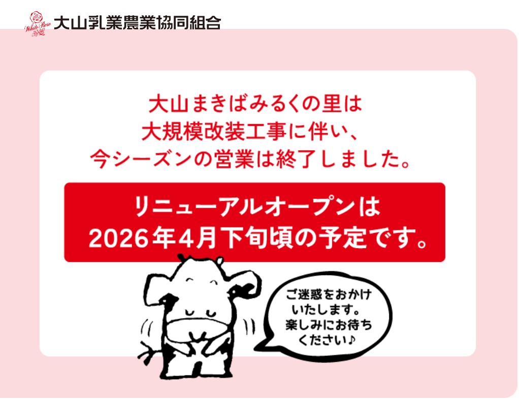 そうなんで。大山まきばみるくの里、只今リニューアル工事為休業しているんです。