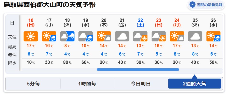 ちなみに、当館のある「大山町あけまの森」の気温をちらっと確認してみると……