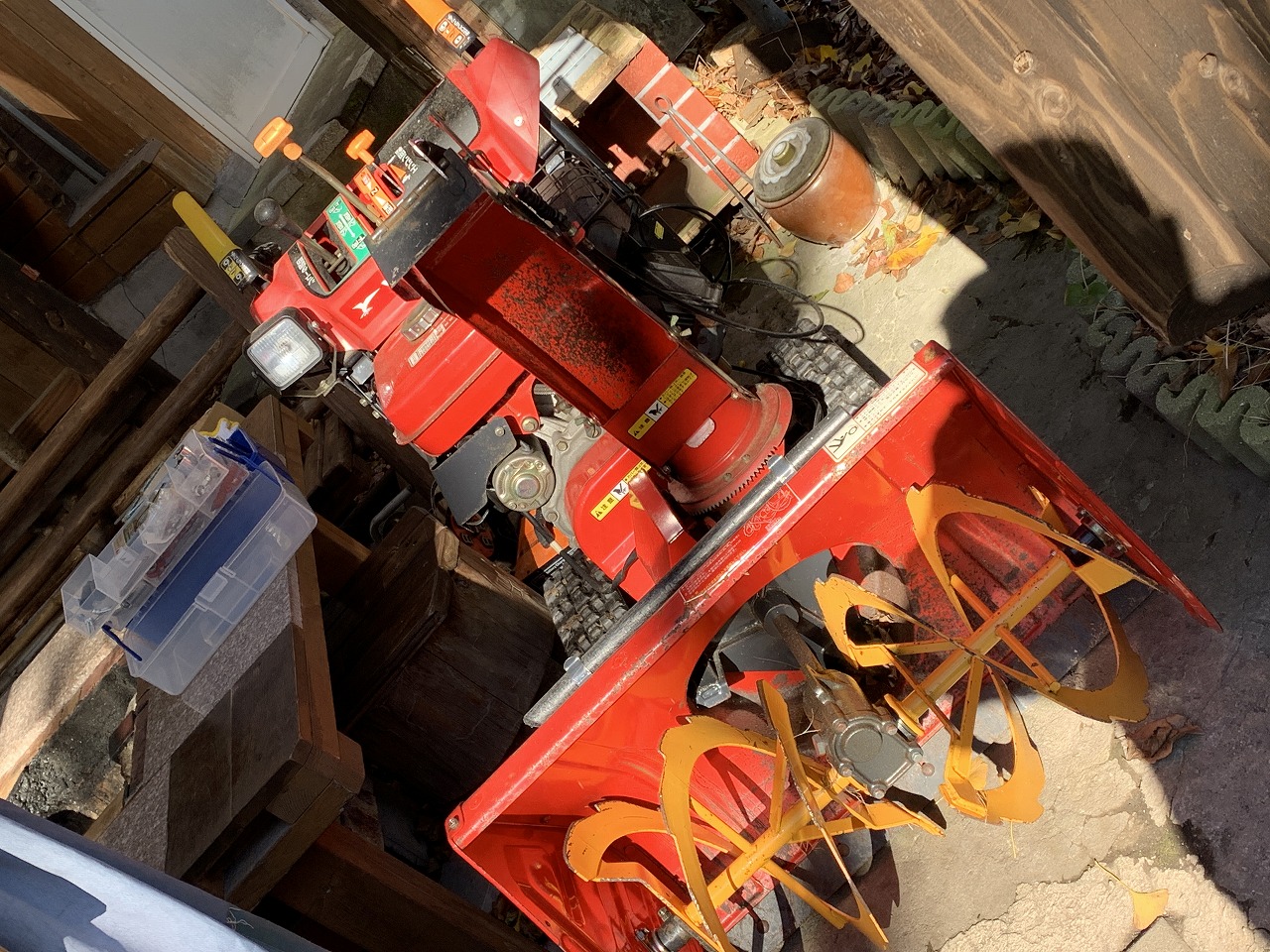 その第一弾が除雪機の点検整備。春からずーっと倉庫にしまってあった除雪機。