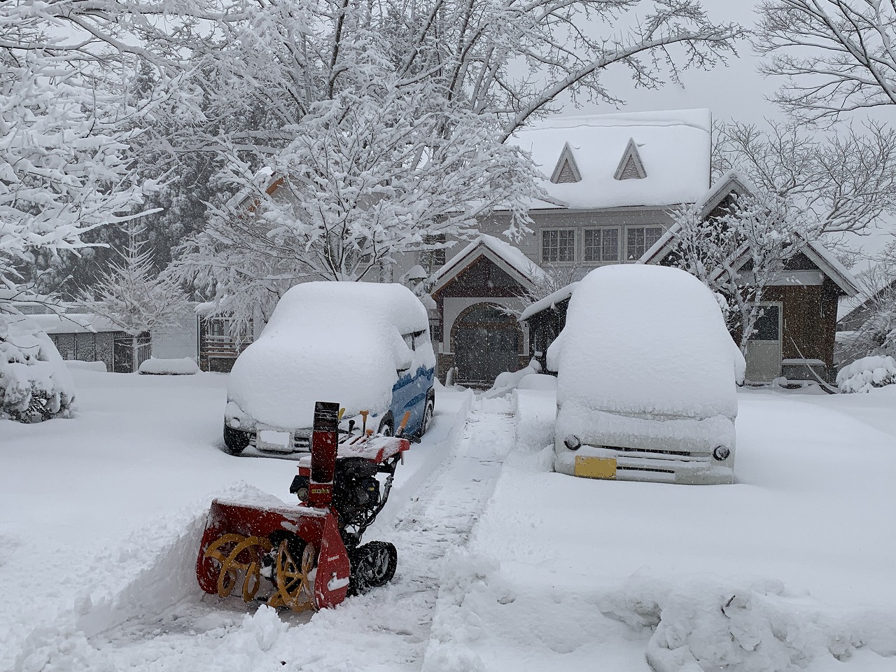 この後駐車場を除雪し、自宅の前を除雪。約2時間半かかりました(苦笑い)