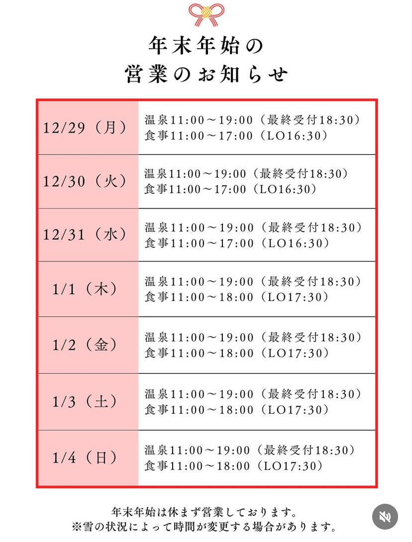 しかもしっかり年末年始の営業時間の案内が掲載されています。