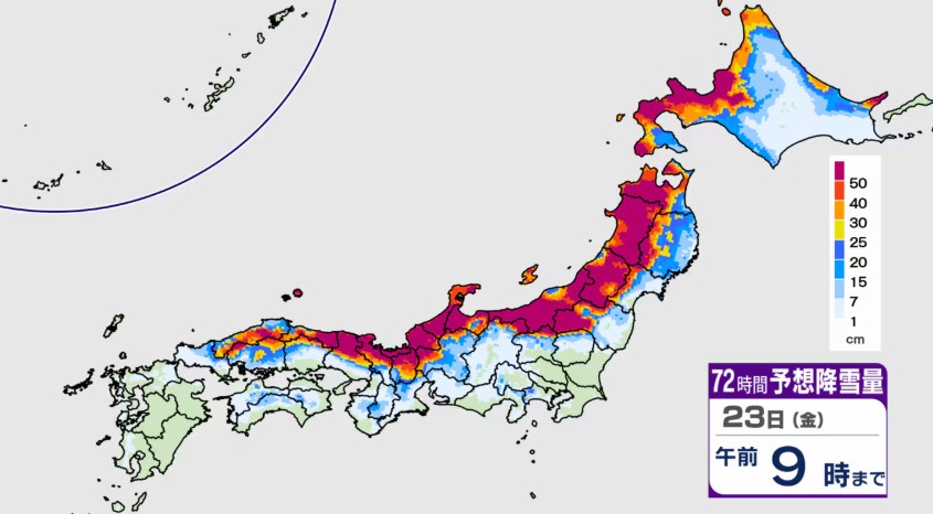 東部の山間部を中心に最大70cm〜80cmに達する見込みです。
