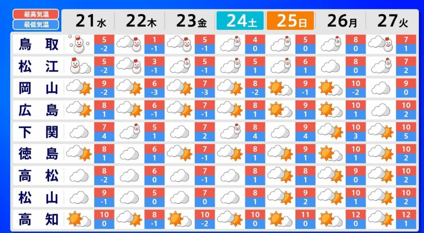 今回の寒波は1週間から10日程度長引く予報が出ています。